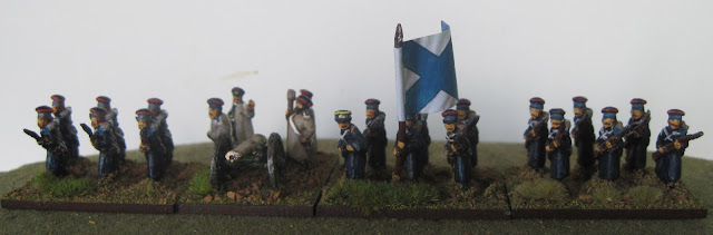 Above, the Foot Guards. Currently two battalions and all from Minifigs. I have a third to finish from Irregular. On their first outing the Foot Guards did not do well. So much so that Colin Campbell opined it would have been better if they had all been shot rather than run away. Luckily for them Campbell was ignored. All the same we can note that they subsequently performed no better than the British Line Regiments.