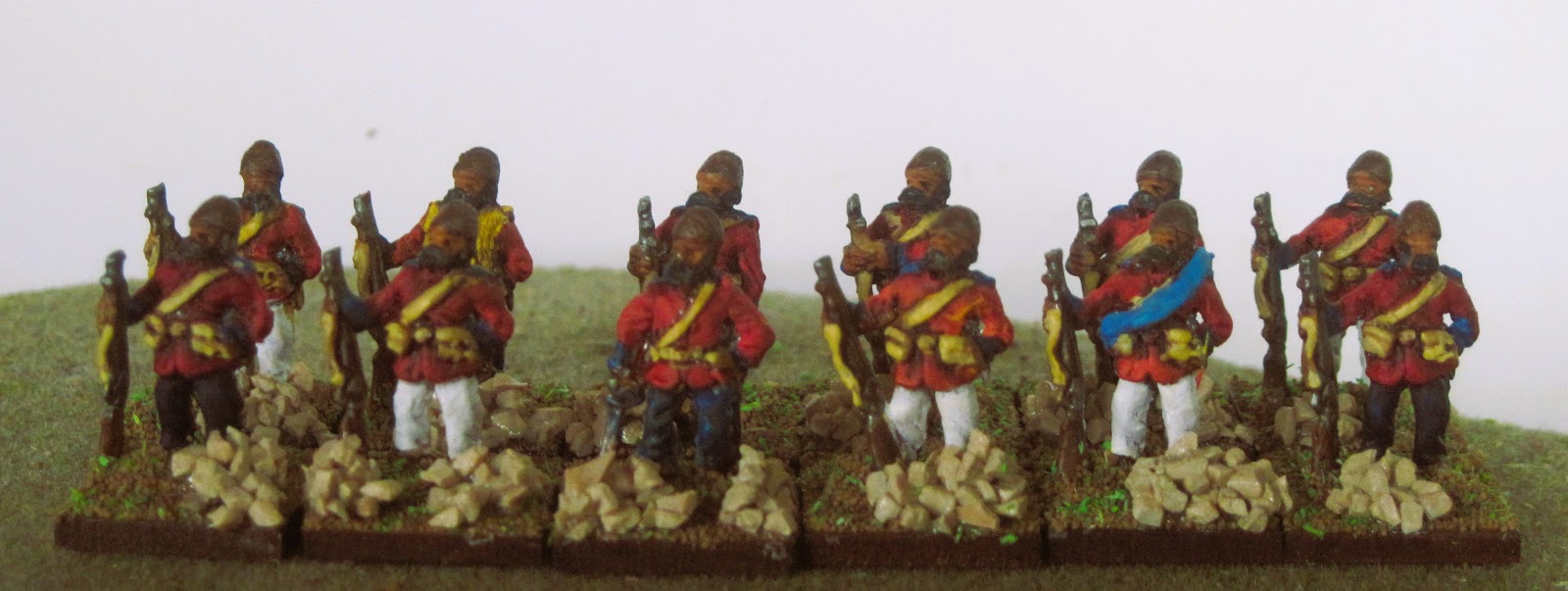 All the same they can form Close Order and Volley. A good reason to add another "Company". I've given these lads Blue facings by way of variety. The Afghan Regulars seem to have reserved their red coats for parades and fighting. While in Barracks or on the march they wore every day clothes.